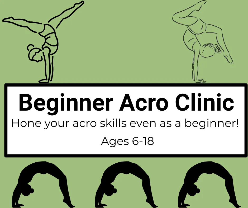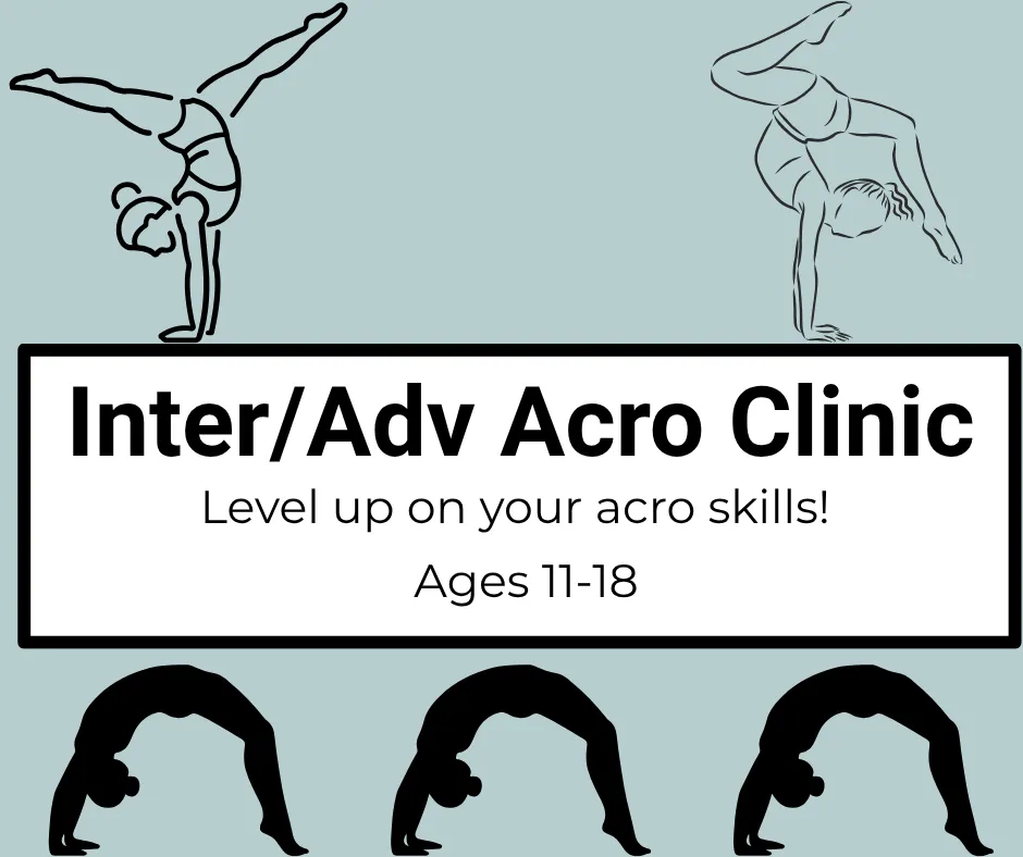 December 29th @7:00-8:00pm. Take your acro skills to the next level! This intensive clinic is designed for experienced acro students ready to refine technique, increase strength, and master more advanced skills.